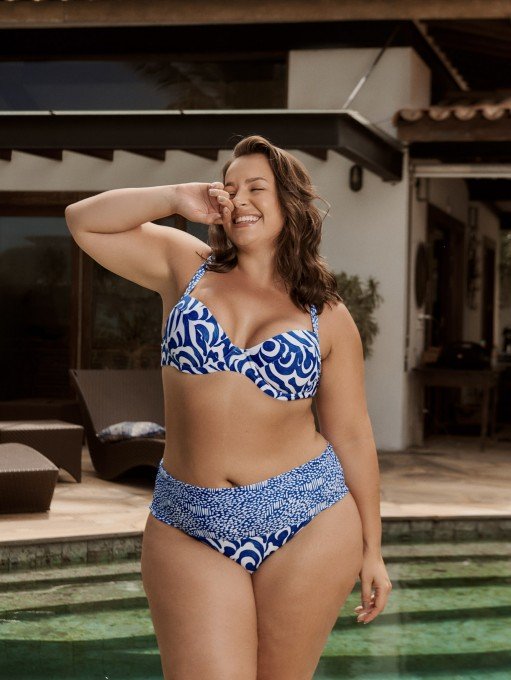 • Top Biquini Meia Taça Com Bojo Estampa Wave