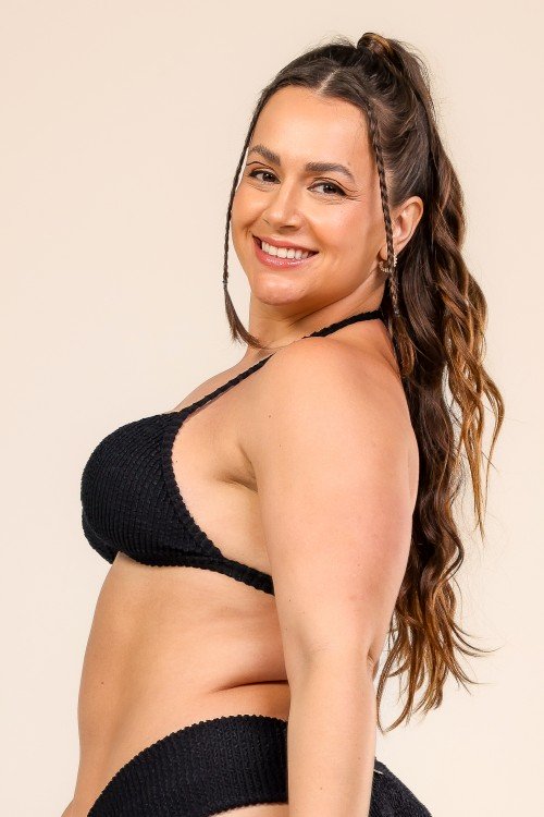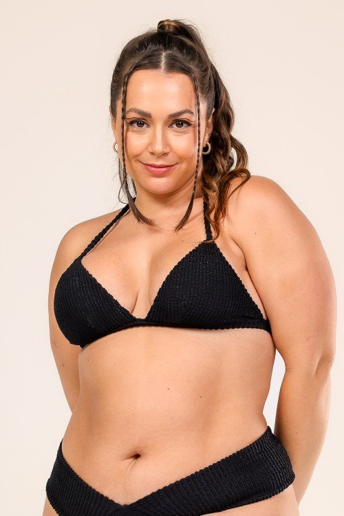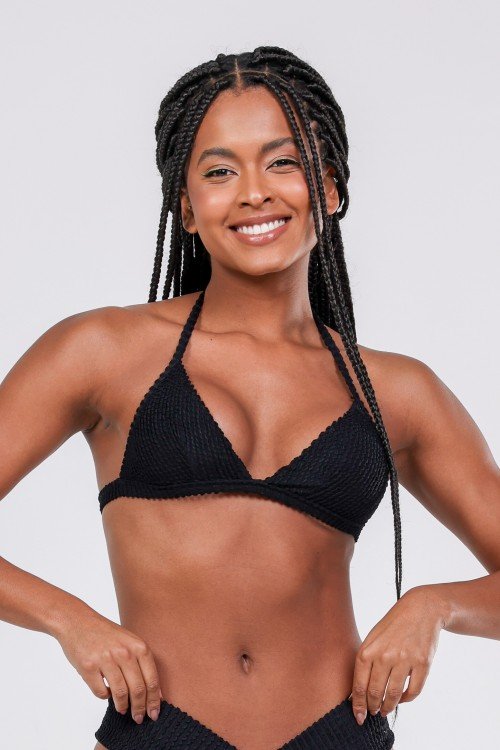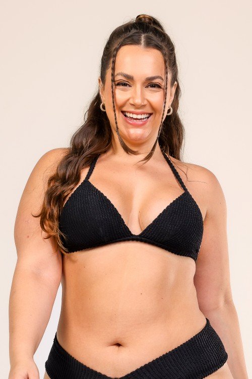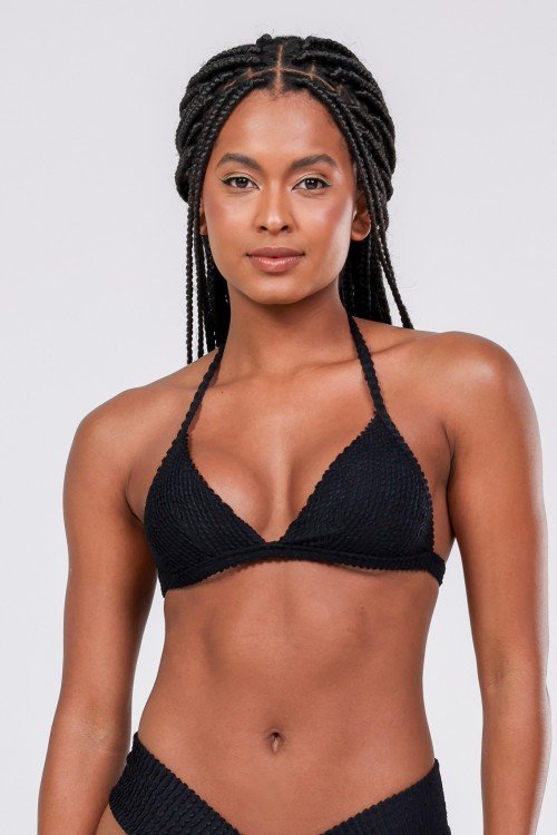 • Cropped Biquini Com Decote Transpassado E Bojo Removível Preto