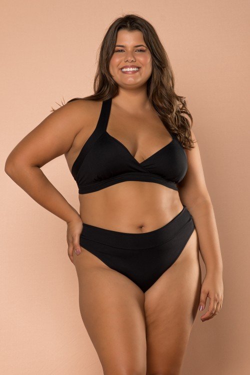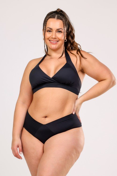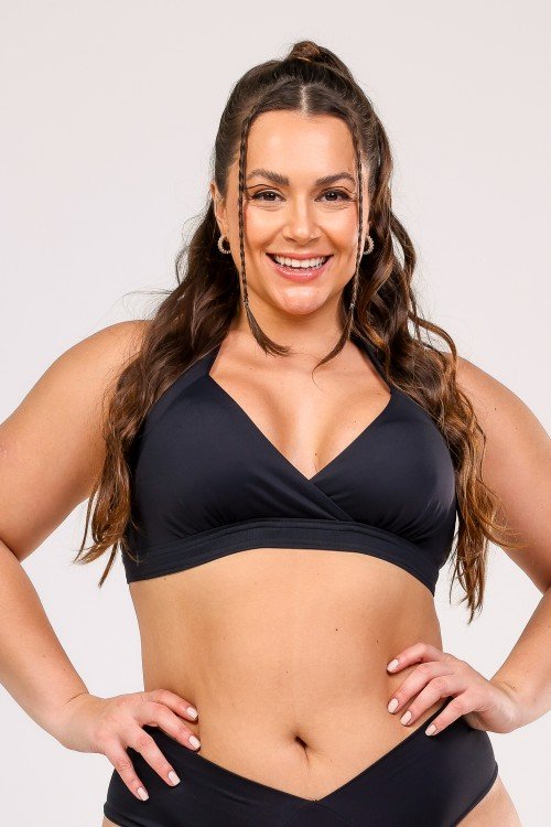 • Cropped Biquini Com Decote Transpassado E Bojo Removível Preto