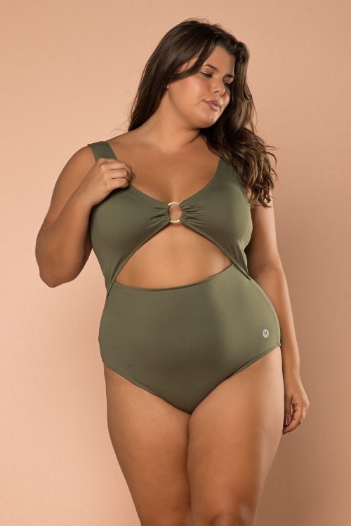 body maio com decote transpassado com bojo removível e lacinho nas costas e estampa de fundo verde e folhas brancas e249
