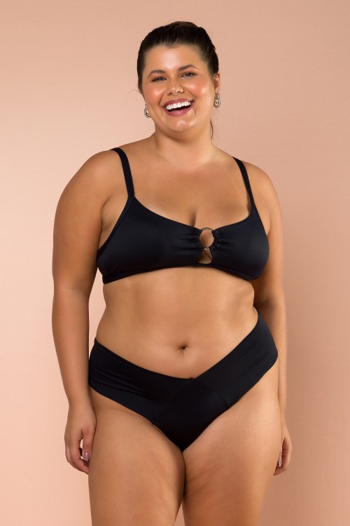 Top Biquini Com Alça Reta Detalhe Em Argola Preto