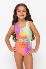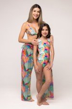 Body Maiô Sublimado Com Bojo Removível Com Decote E Detalhe Em Argola Estampa De Folhas Verdes E Flores E Bolinha Branca E108