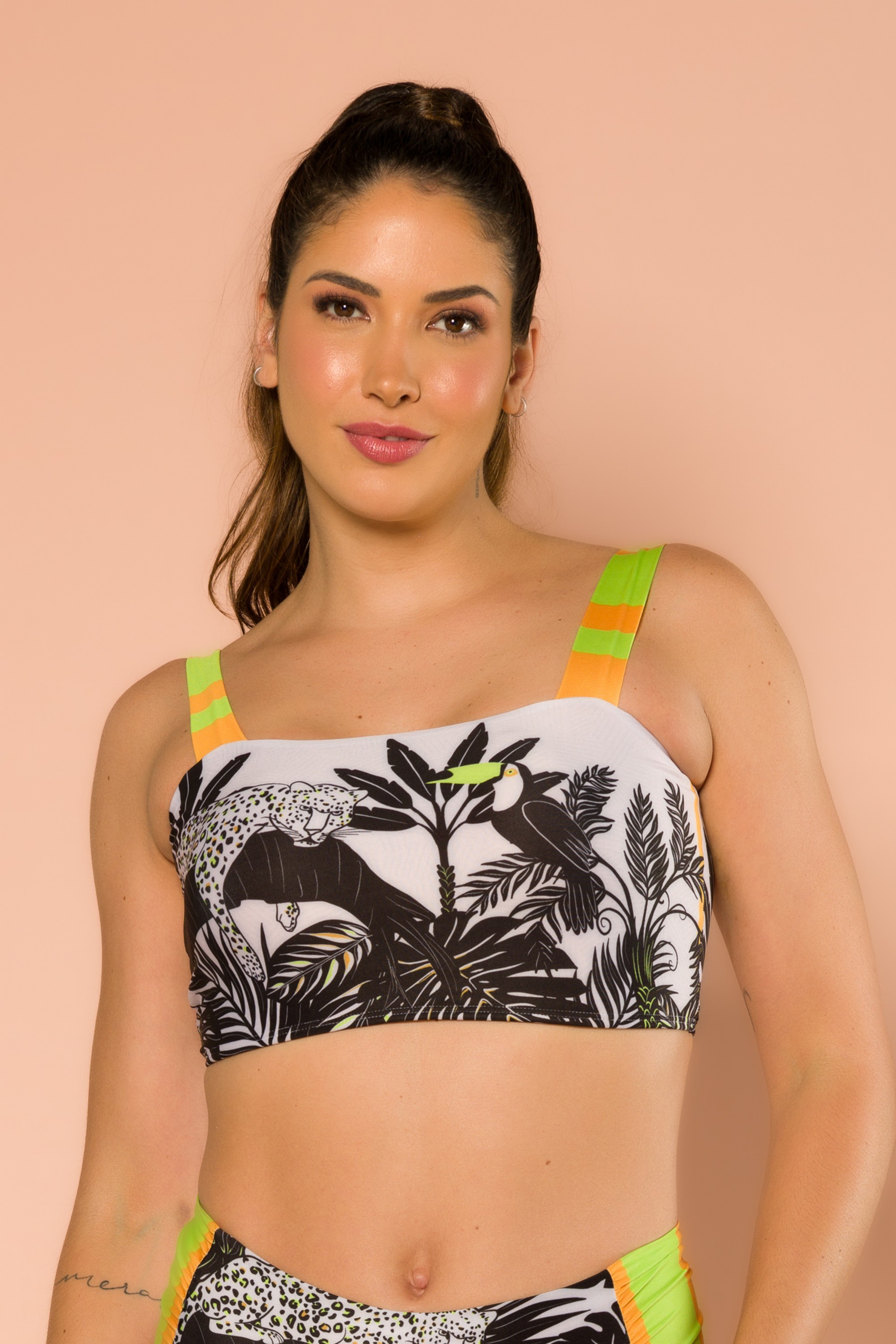 Esse top cropped é a peça perfeita para compor looks, é um modelo estilo top que combina perfeitamente com diversos looks para o dia a dia.