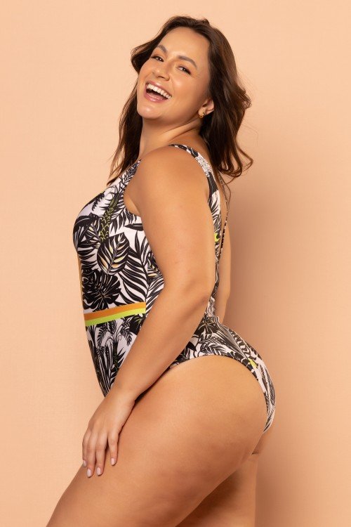 Body Maiô Um Ombro Só Com Detalhe Em Argola E Estampa Solar E269