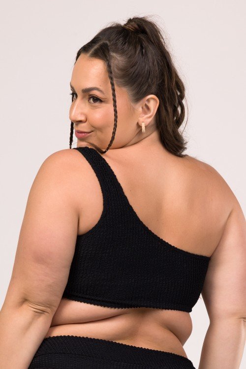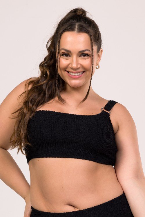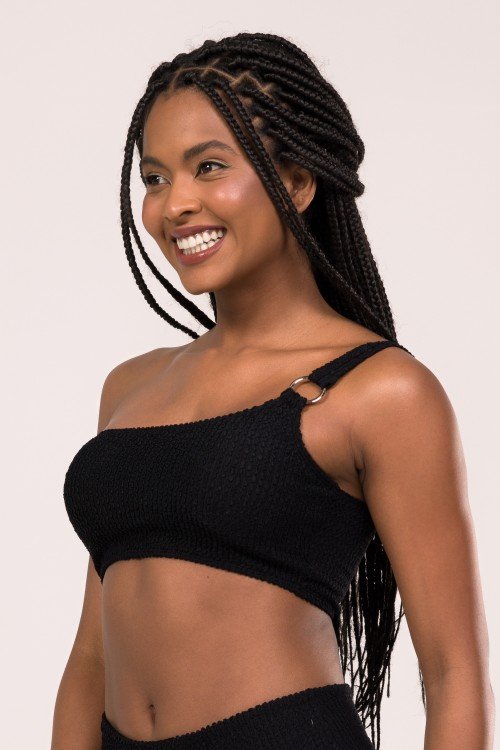 Top Biquini Um Ombro Só Com Detalhe Argola Preto