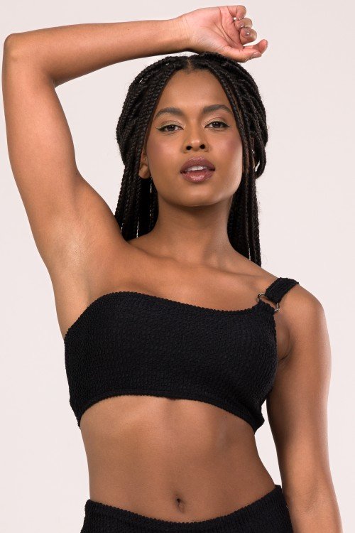 Top Biquini Um Ombro Só Com Detalhe Argola  Preto