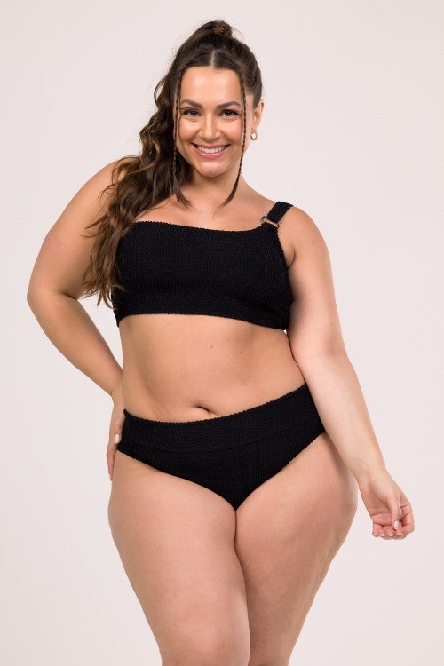 • Top Biquini Um Ombro Só Com Detalhe Argola  Preto