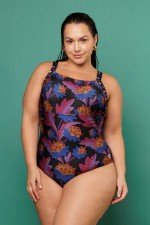 body maiô sublimado com bojo removível e detalhe em argola e estampa de tulipas coloridas e263