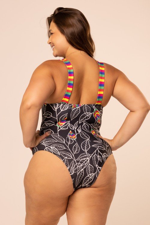 body maiô com decote em v com bojo removível vd. foliage