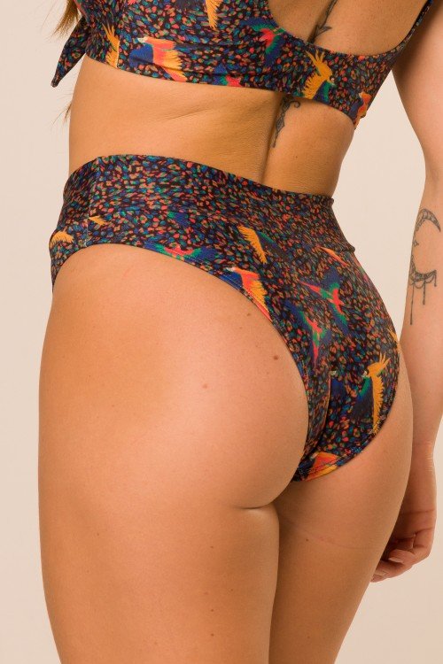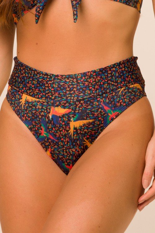 • Calcinha Biquini Cós Alto  Estampa Araras E313
