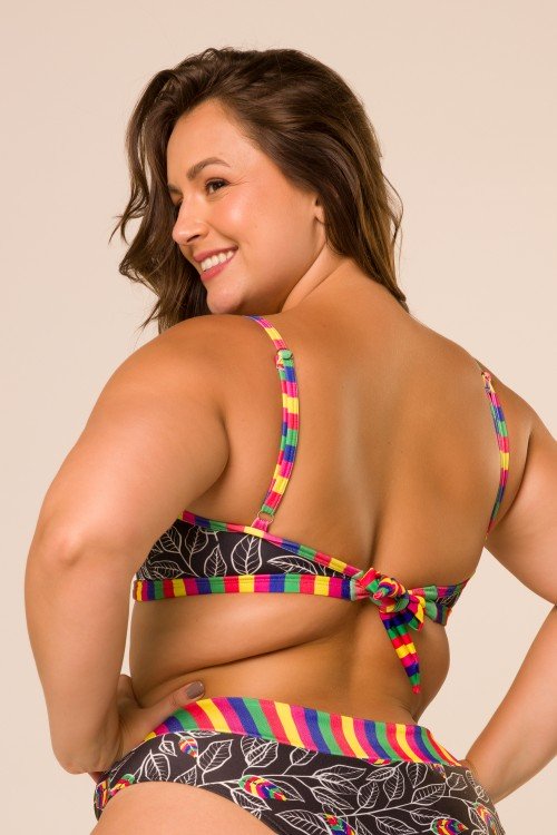 top biquini com arco em v com bojo removível estampa araras e313