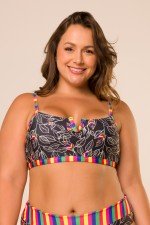 Top Biquini Cortinão Com Aro  Estampa Flores De Hibiscus