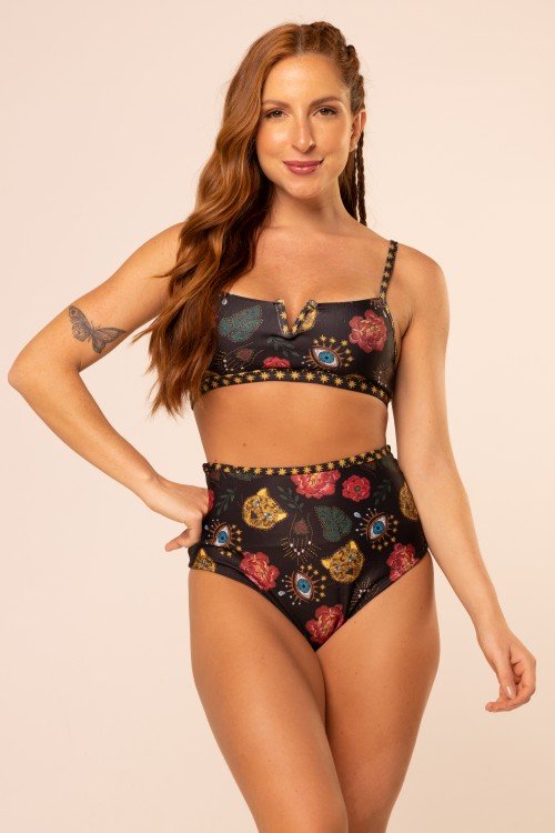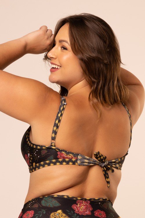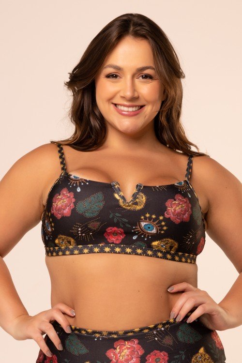Top Biquini Transpassado Com Bojo Estampa Jardim Noturno