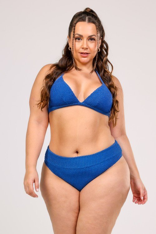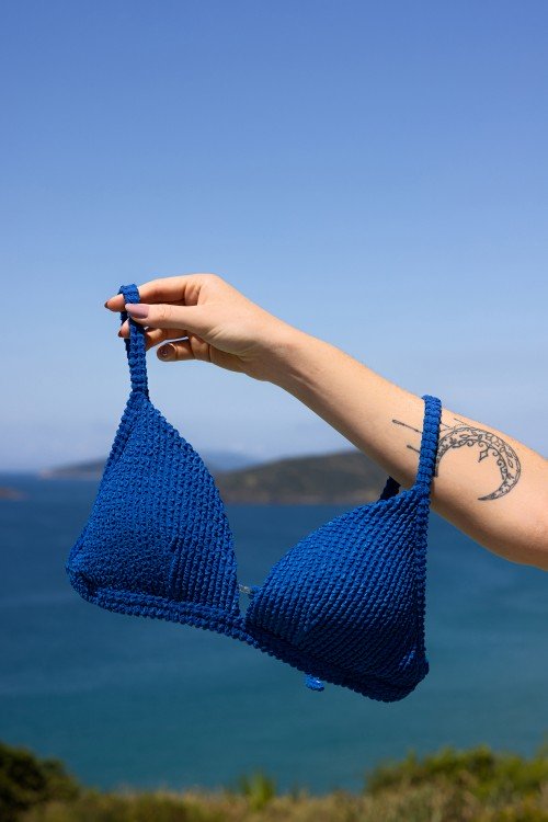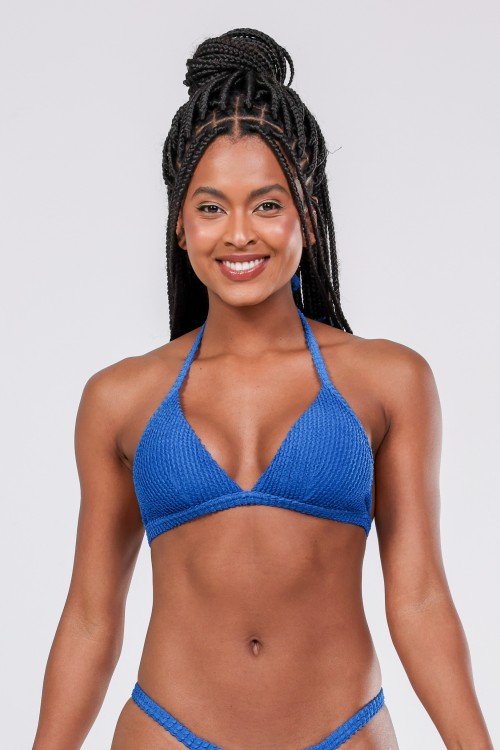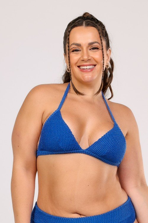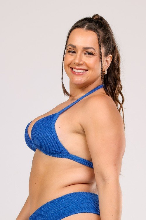 Top Biquini Cortinão Com Pala Larga Azul