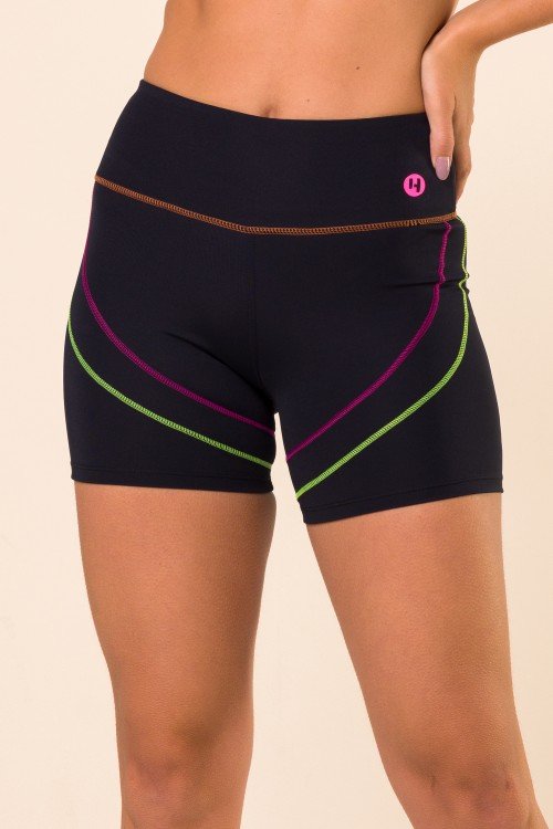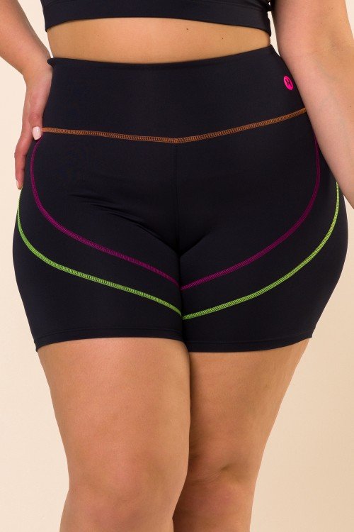 • Bermuda Fitness com Recortes e Pesponto Coloridos