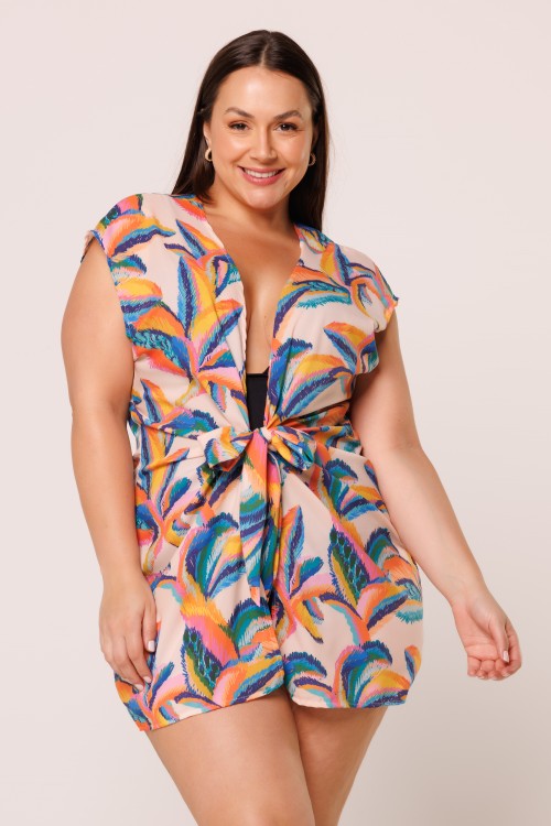 Saia Pareô Transpassada Curta Estampa Viva E310