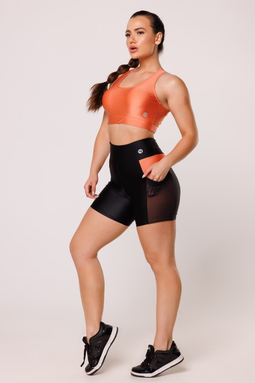 • Bermuda Fitness Bolsos Sobreposição Preta