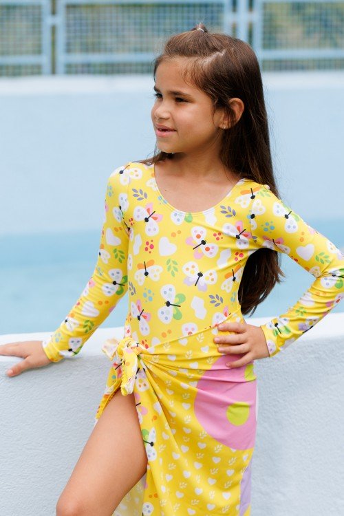 body maio com bojo removível decote quadrado estampa pontilhismo