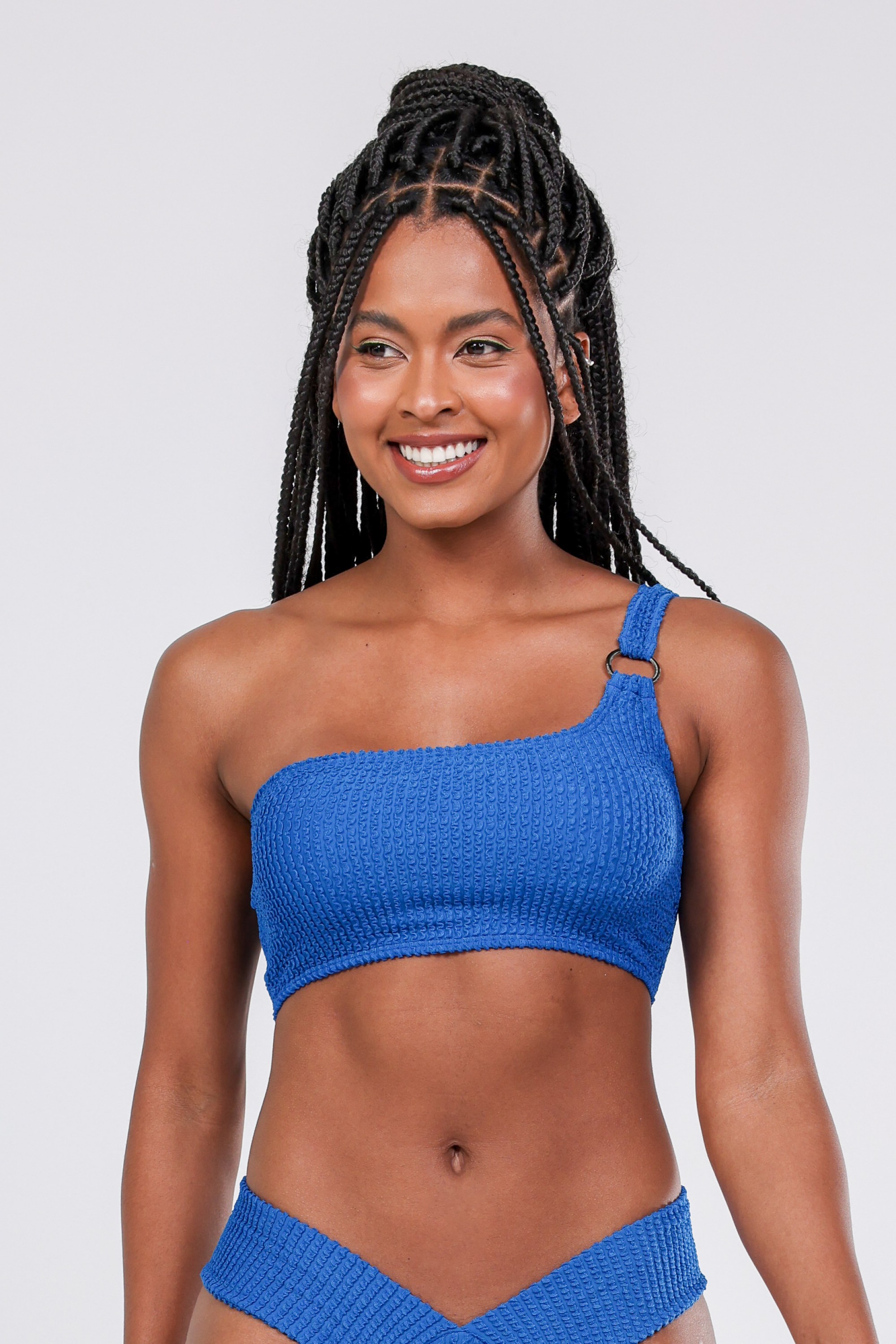 Top Biquini Um Ombro Só Detalhe Argola Azul Marinho