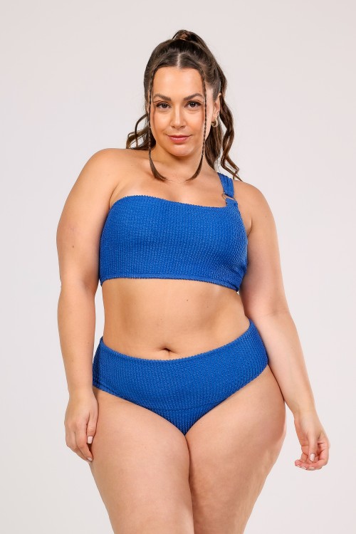 Top Biquini Um Ombro Só Detalhe Argola  Azul Marinho