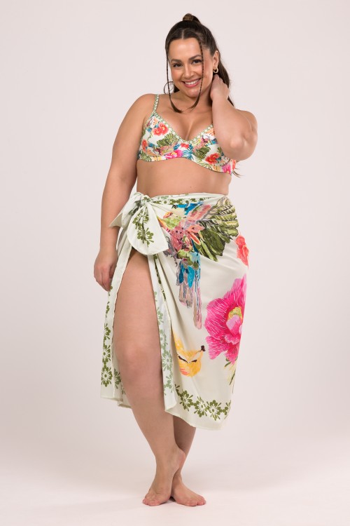 Saia com Lateral Franzida Estampa Solar