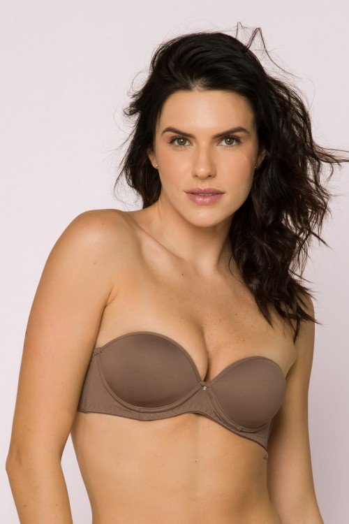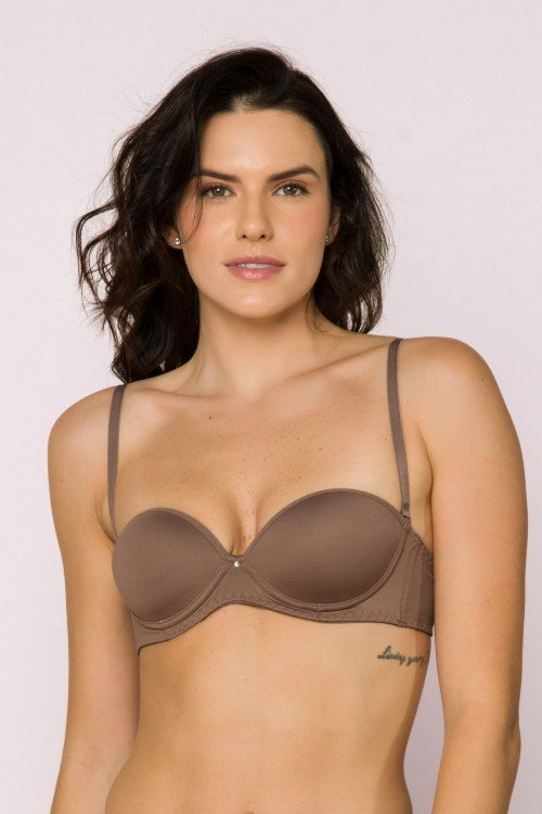 sutiã com bojo tomara que caia com decote profundo chocolate