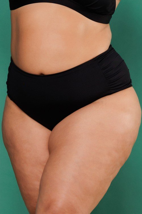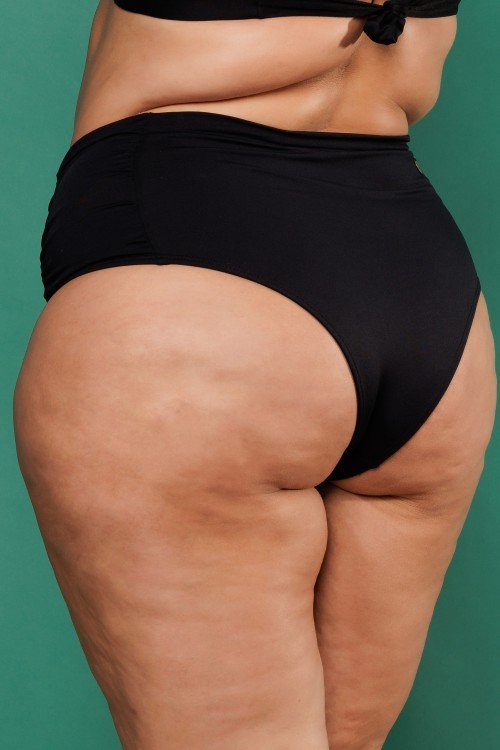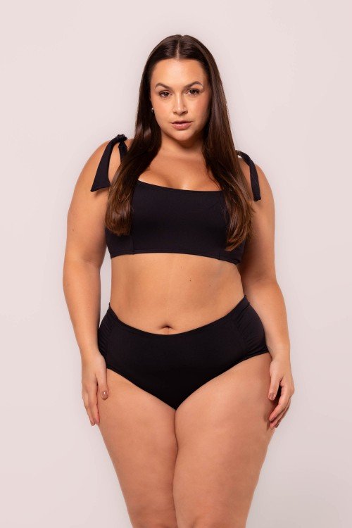 • Calcinha Biquini Cintura Alta Com Franzido Na Lateral Preta