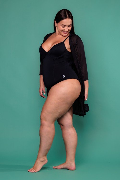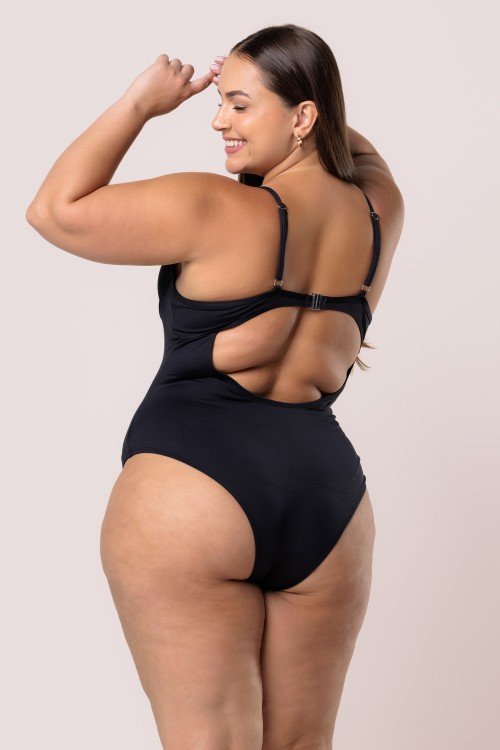 calcinha biquini cintura alta com franzido preta