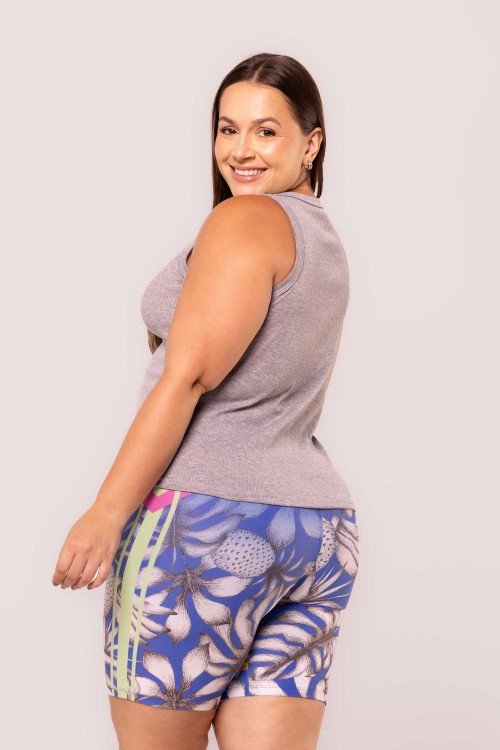 Short Fitness Zero Transparência Estampa Onça Floral E359