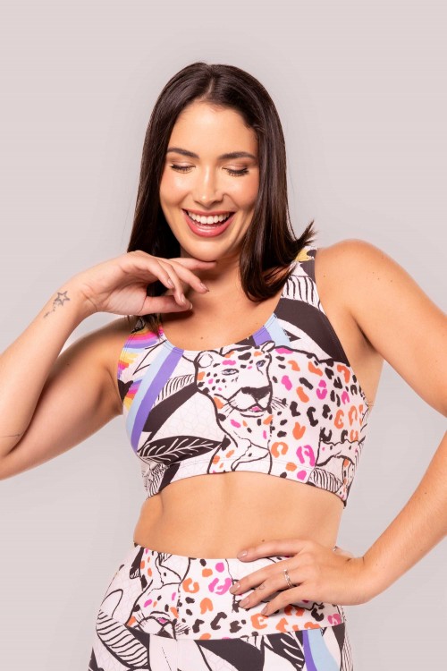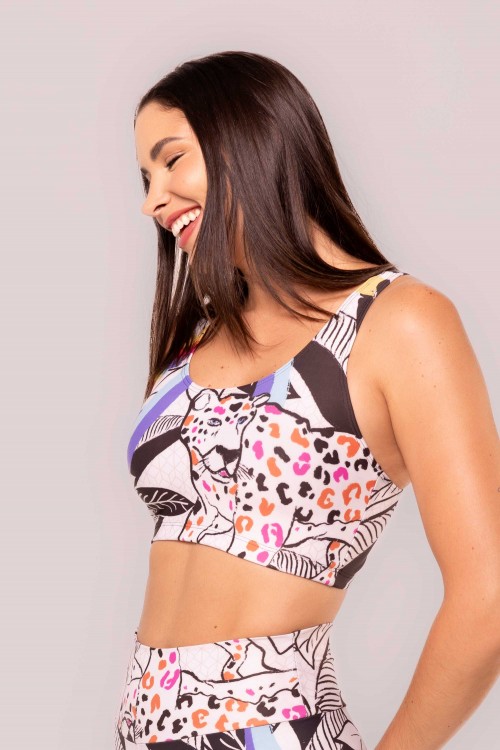 Calça Legging Zero Transparência Estampa Onça Floral E359