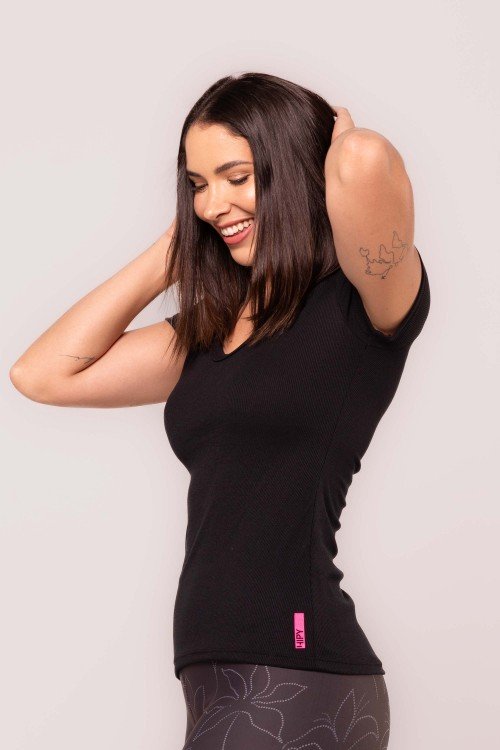 • Top Fitness Nadador Bojo Removível e Detalhe em Pesponto Colorido