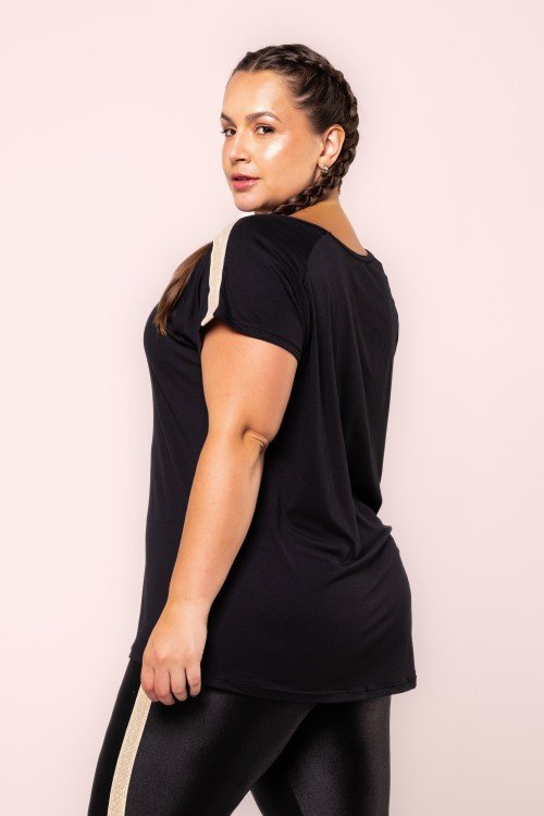 Blusa Manga Curta Brilho Preta