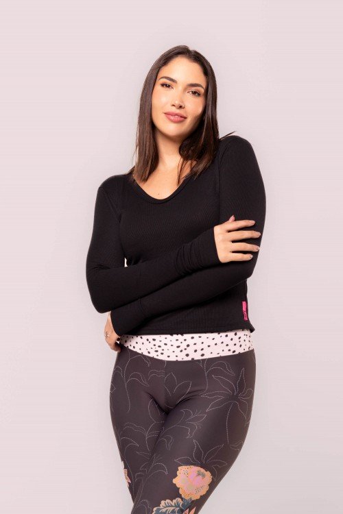 camiseta canelada estampa onça floral e359