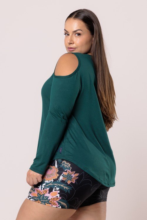 Blusa Viscose Manga Longa Detalhe no Ombro Verde Escuro