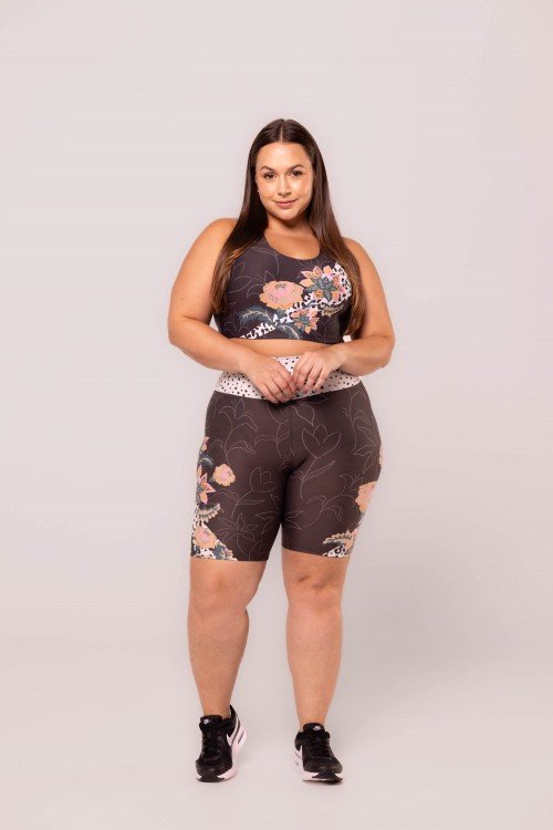 • Bermuda Fitness Zero Transparência Estampa Onça Floral E359