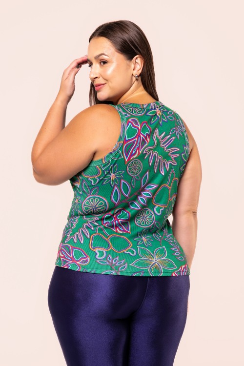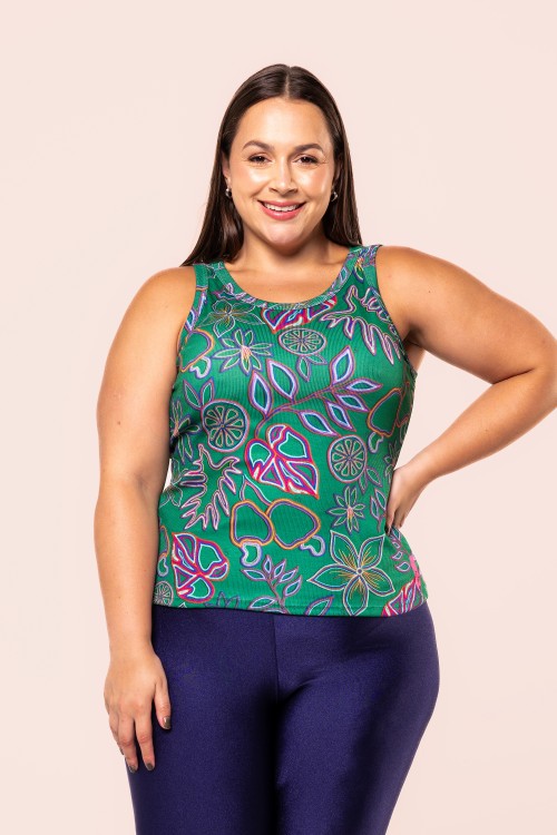 Camiseta Canelada Estampa Bordado Colorido E348