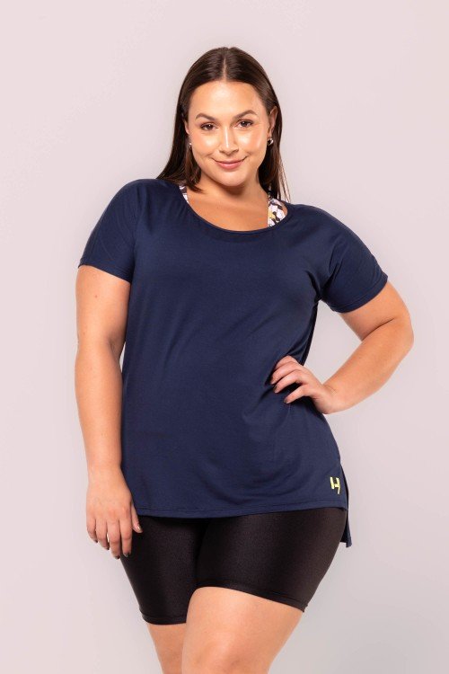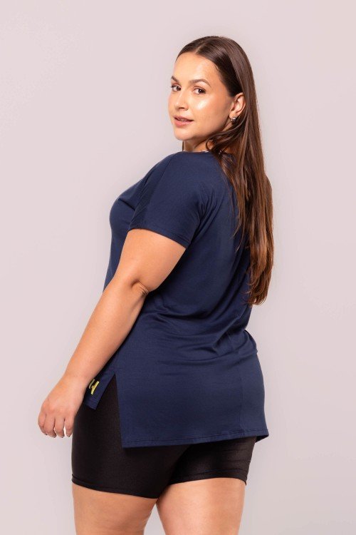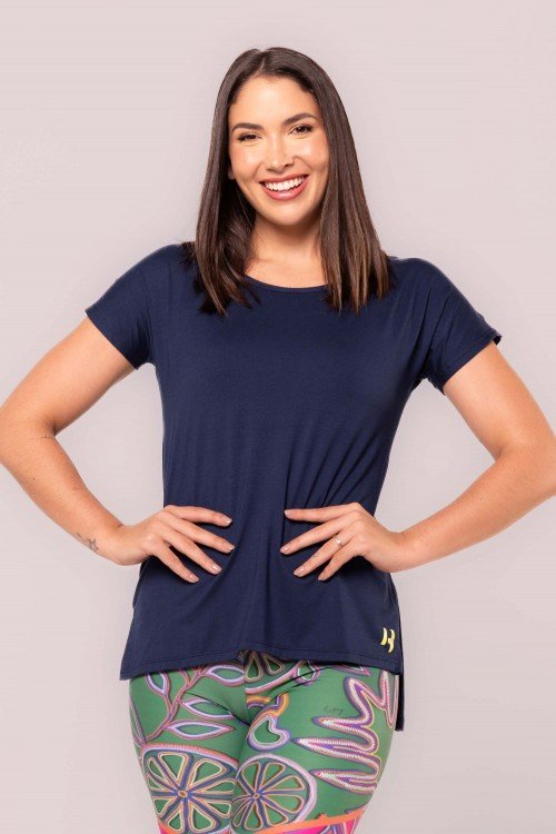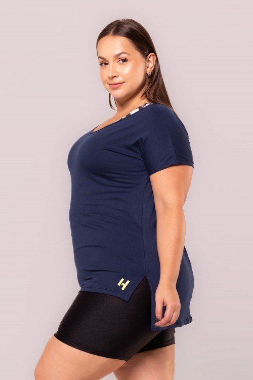 • Blusa Alongada Em Gola Canoa Viscose Azul Marinho