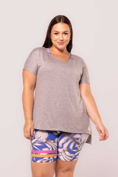 Blusa Alongada Em Gola Canoa Viscose Cinza Mescla