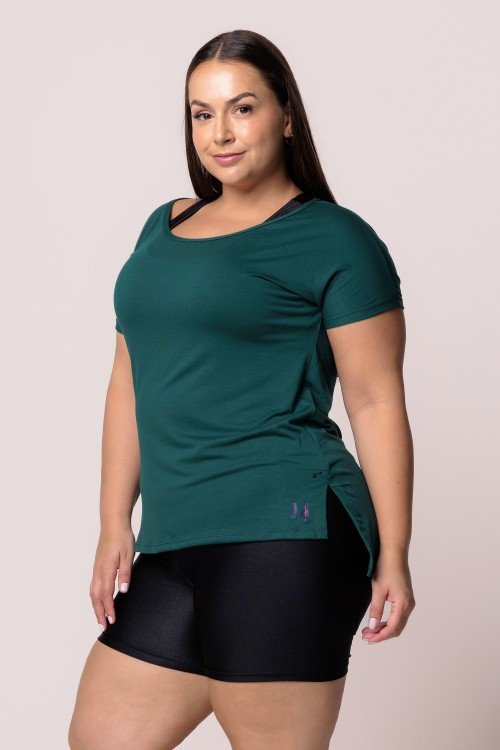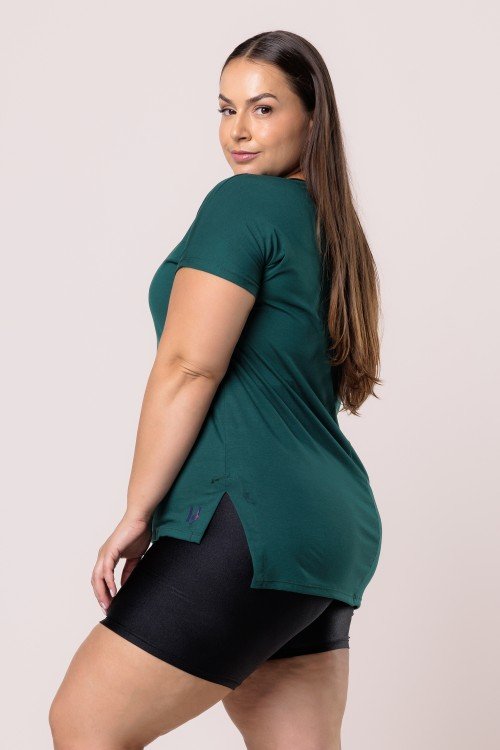 • Blusa Alongada Em Gola Canoa Viscose Verde Escuro