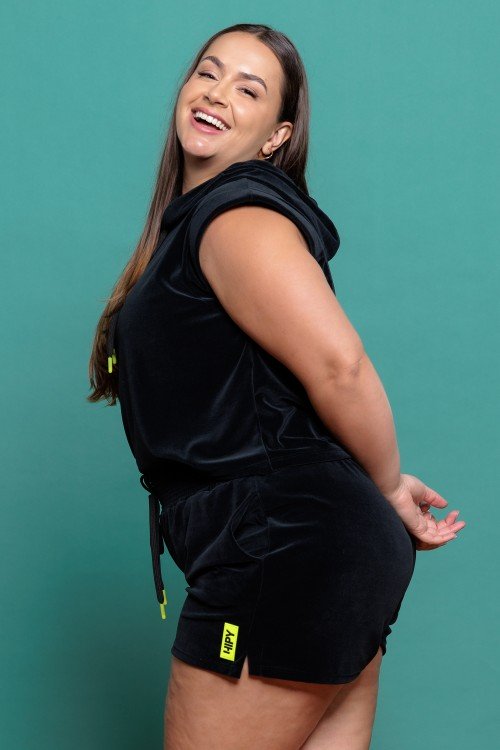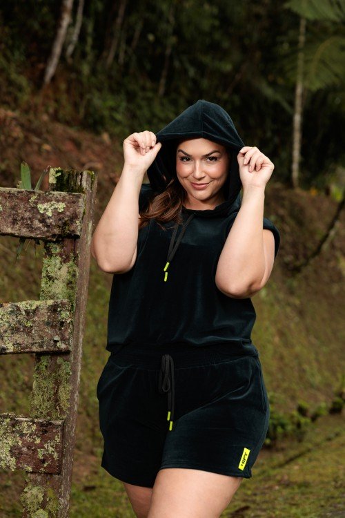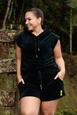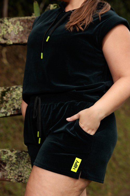 vestido moletinho com detalhes verde lima