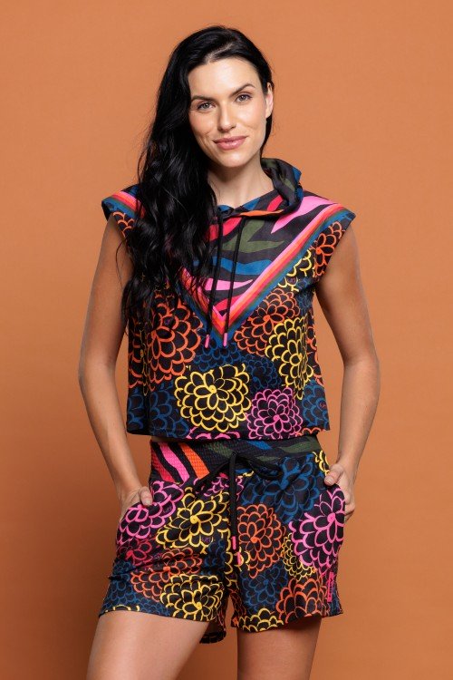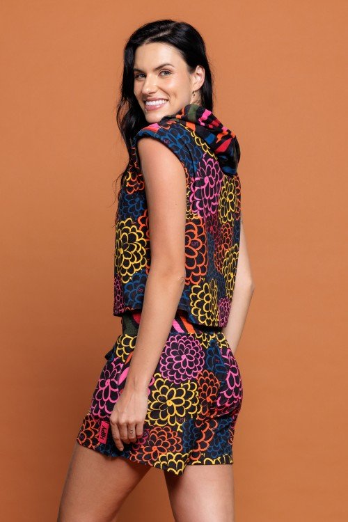 parka corta vento estampa flower