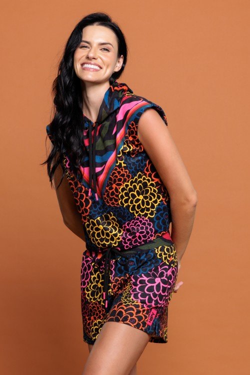 Parka Corta Vento Estampa Flower