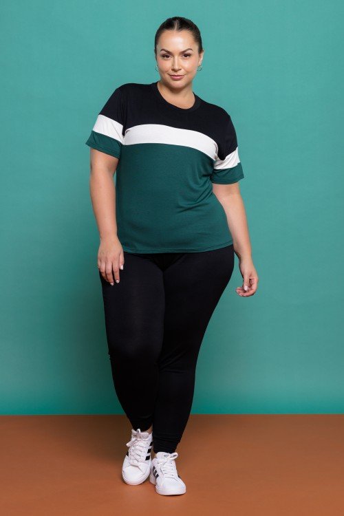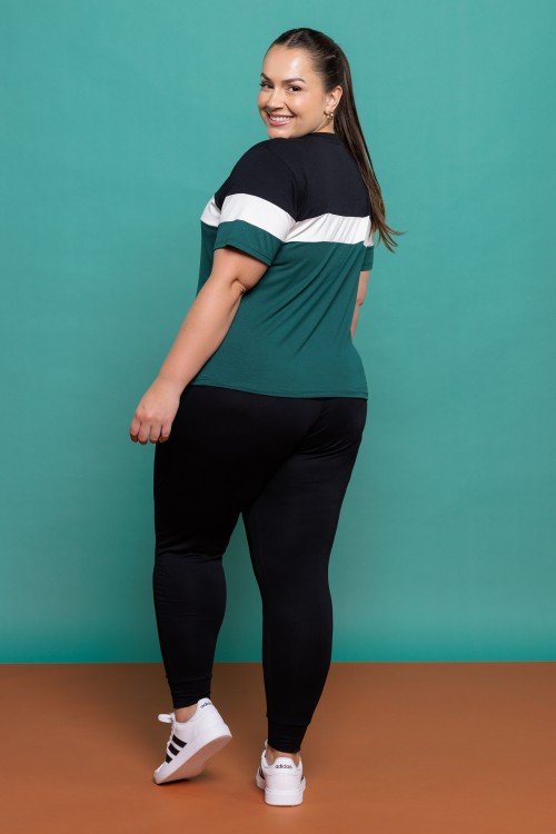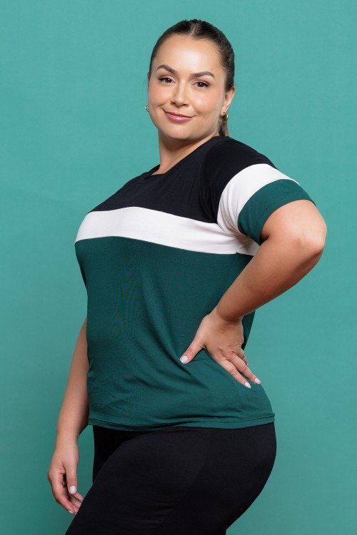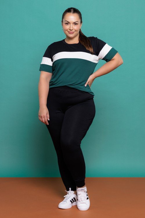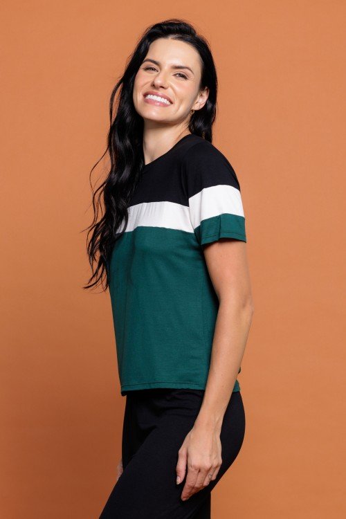 Blusa Canelada Manga Curta Estampa Outlined E345
