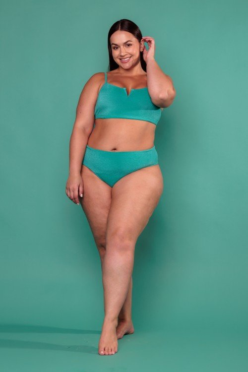 Cropped Biquini com Aro Em V Com Bojo Removível Verde Médio