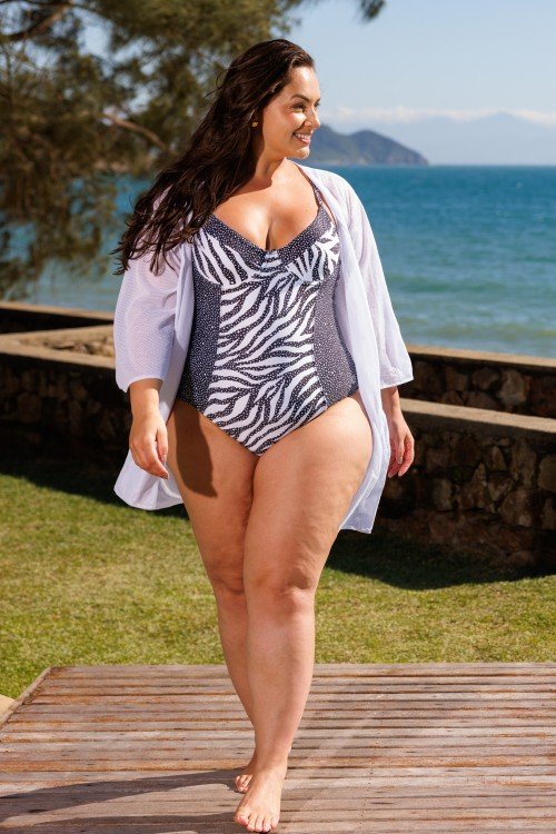 Body Maiô Meia Taça com Aro Estampa PB