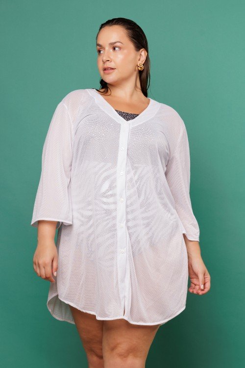 Saída De Praia Kaftan Curto Branco