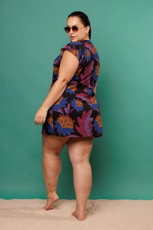 Vestido Regatão de Tule Estampa Jardim Noturno
