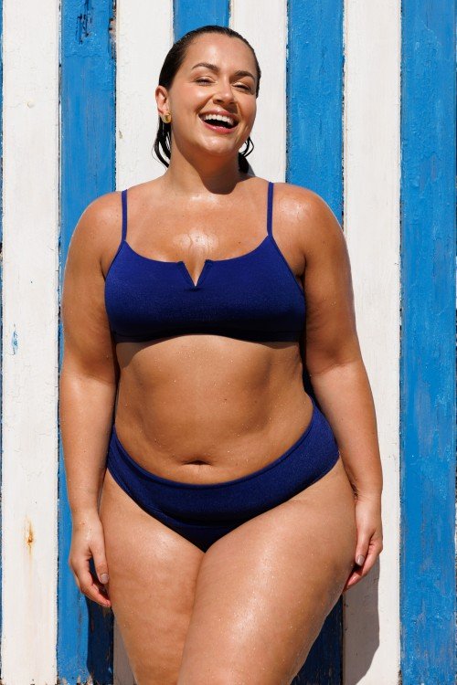 Cropped Biquini com Aro Em V Com Bojo Removível Azul