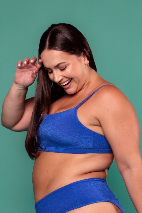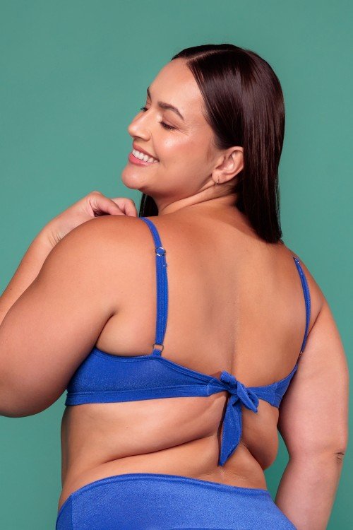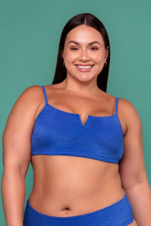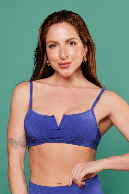 • Cropped Biquini com Aro Em V Com Bojo Removível Azul