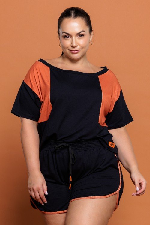 Blusa Viscose Manga Curta Preto